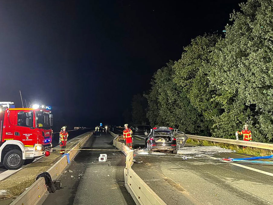 Beim Eintreffen der ersten Kräfte aus Heessel und Schillerslage stand das Audi Coupé bereits in Vollbrand, Flammen schlugen bis zu drei Meter hoch. Die beiden Fahrzeuge kamen rund 50 Meter voneinander entfernt zum Stehen. Durch umherfliegende Teile hatten sich zudem zwei kleinere Brände in der Böschung entzündet.